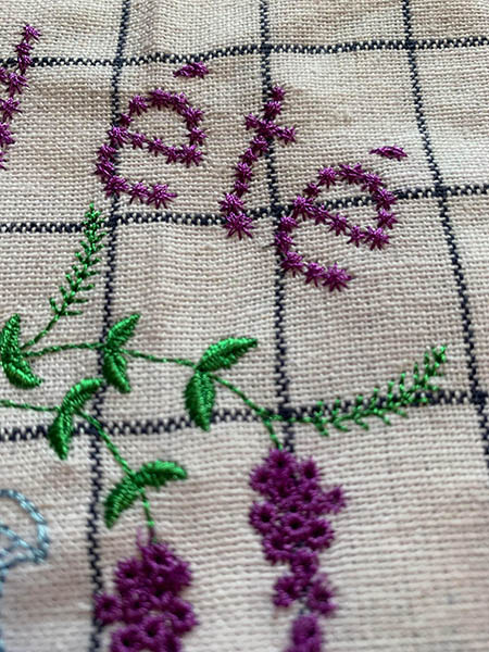 At 100%, Paquerette is about 27 mm or 1 inch high. Because this font uses manual stitches, it should not be rescaled, or only a tiny amount.