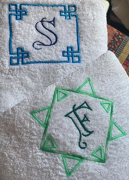La fonte Initials XL est prévue pour être utilisée une seule lettre à la fois. Pour obtenir une lettre encadrée, taper cette lettre et une des “lettres cadres” dans la fenêtre de lettrage, sur la même ligne, sans espace entre les deux.